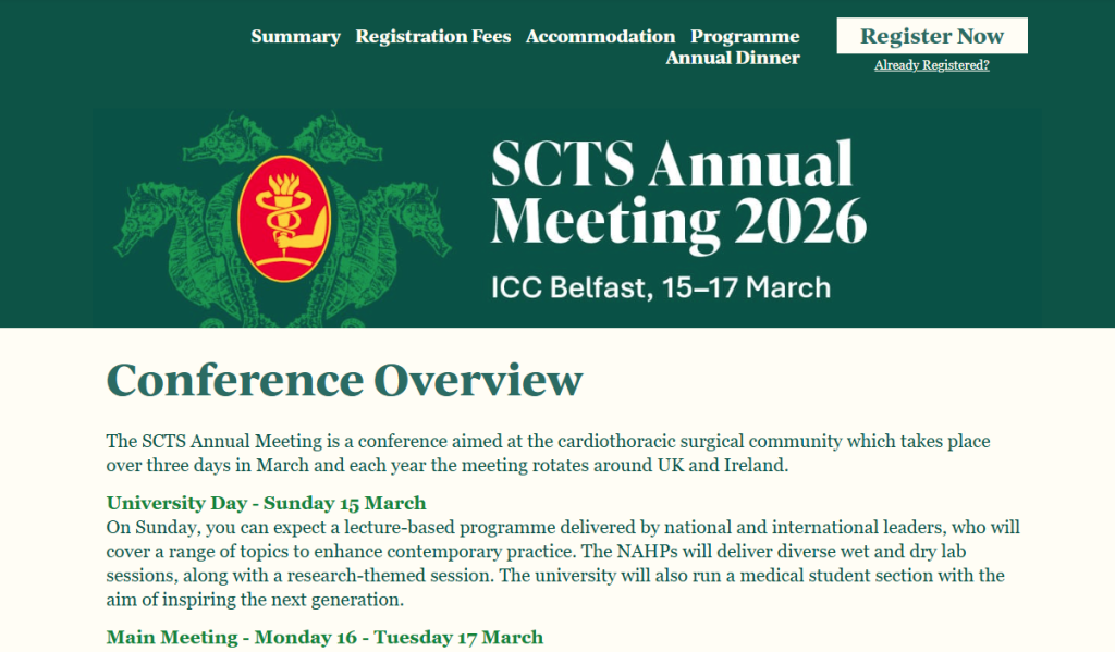 Millbrook Medical Conferences, in collaboration with the Society for Cardiothoracic Surgery in Great Britain & Ireland (SCTS), successfully delivered the SCTS Annual Meeting 2026 from 15–17 March at the ICC Belfast, Northern Ireland.